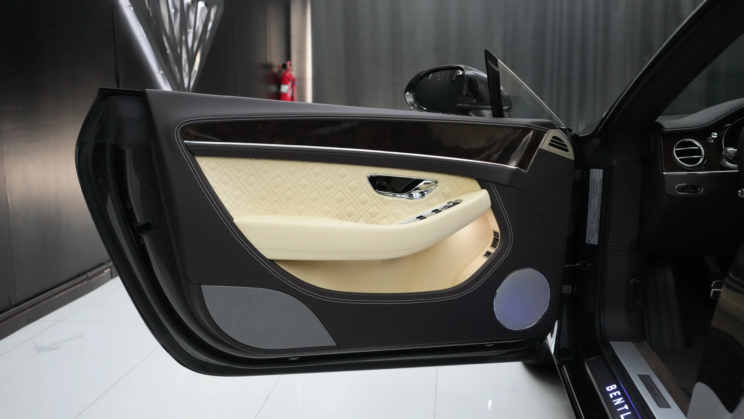 Advanced technology is seamlessly integrated into the interior, providing both convenience and entertainment. The centerpiece of the dashboard is a high-resolution 12.3-inch touchscreen infotainment system, offering navigation, connectivity, and entertainment options. A premium Naim for Bentley audio system ensures an immersive listening experience, whether cruising through city streets or on long drives.