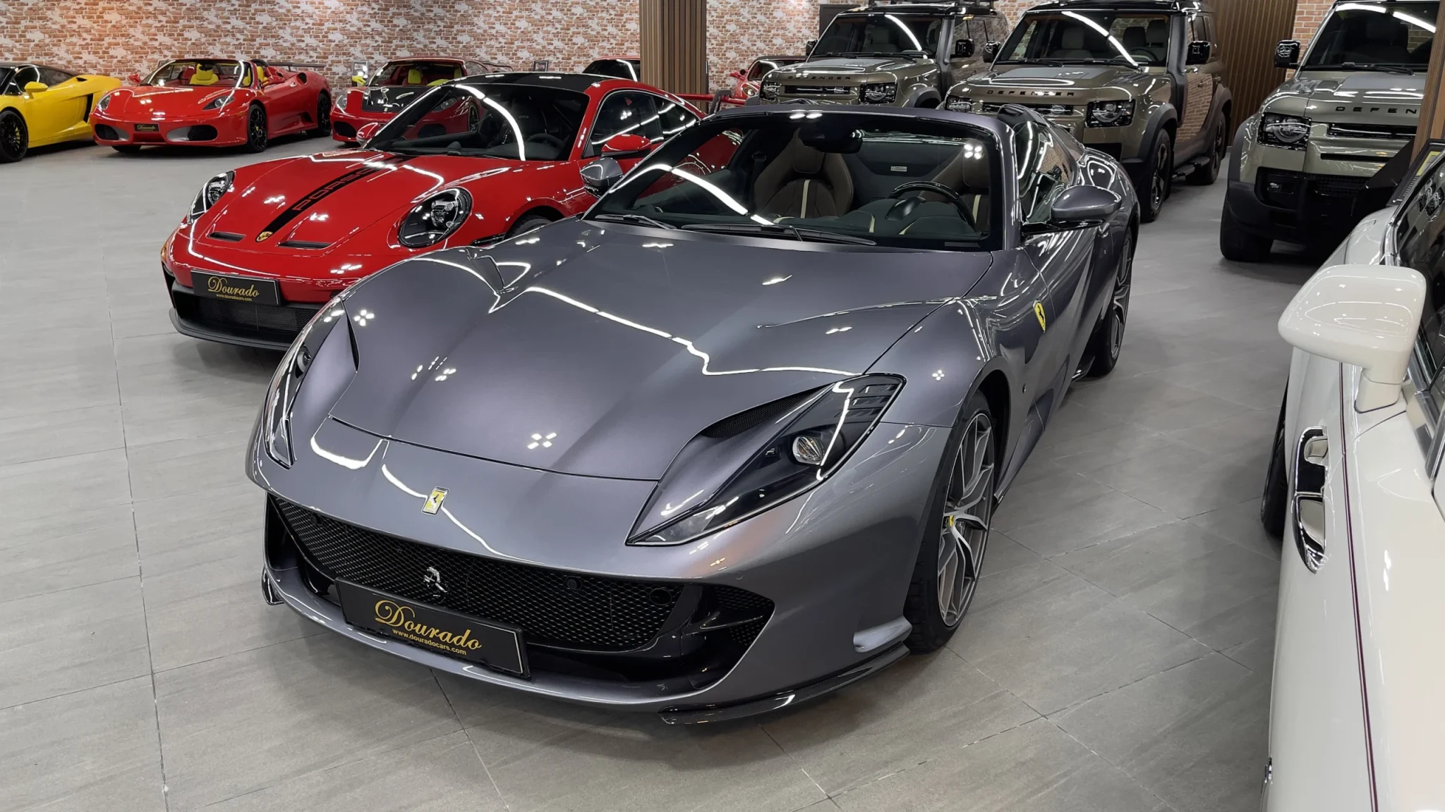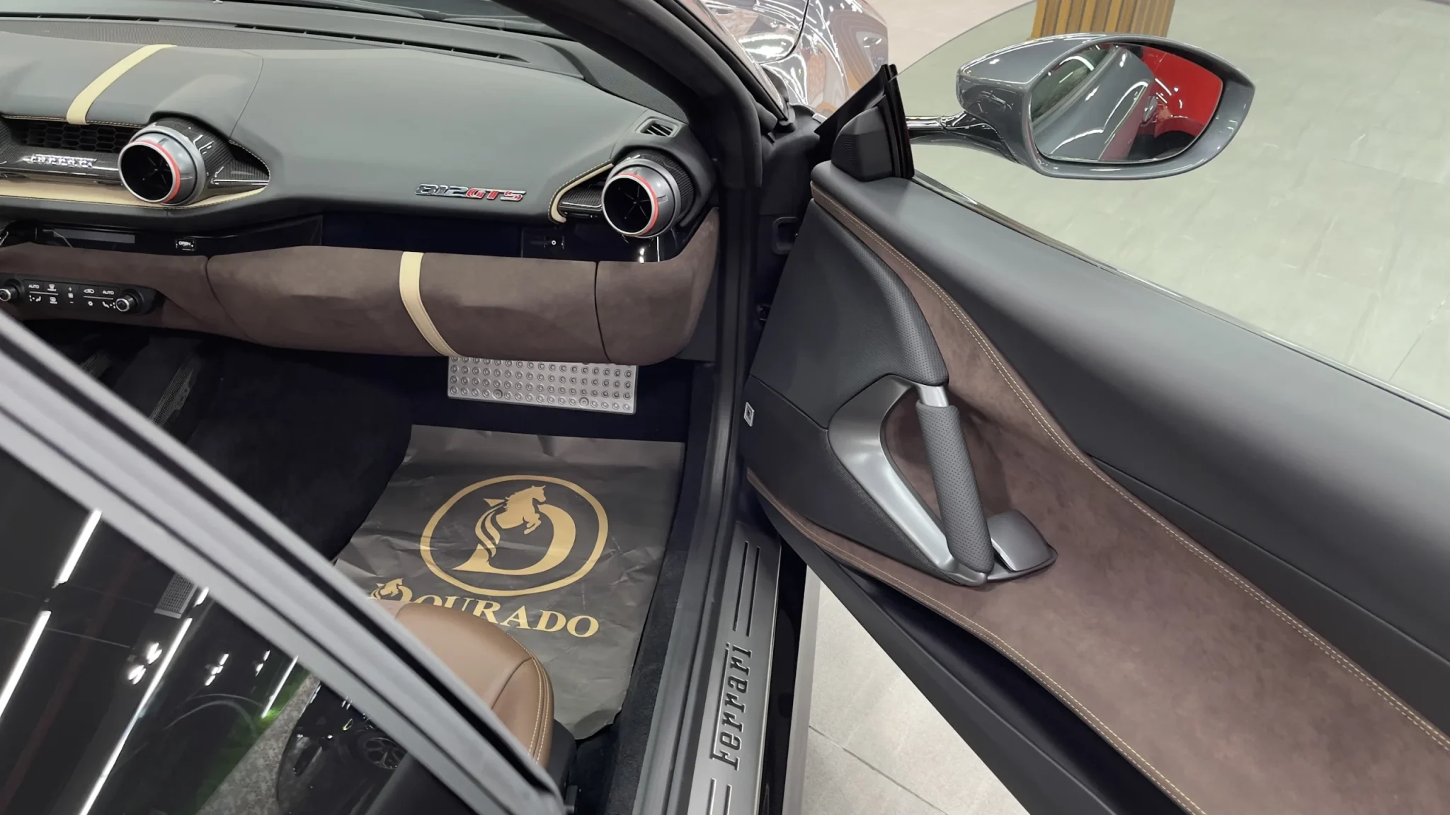 Ferrari 812 gts brown car is aerodynamically refined to eliminate any turbulence arising from the loss of a fixed roof. Explore Dourado Luxury Car for latest luxury car models and Ferrari prices in Dubai UAE.
