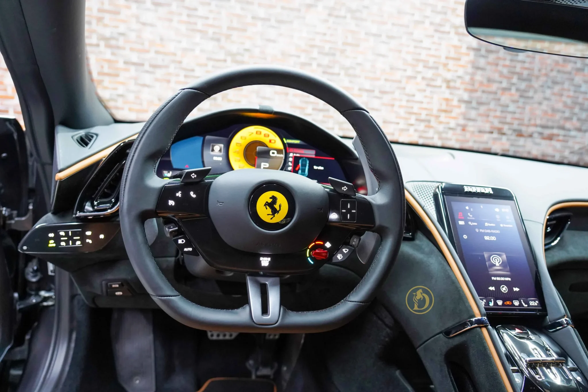 Interior: The interior of the Ferrari Roma is designed for luxury and comfort, with high-quality materials and a focus on the driver. It features a digital instrument cluster, a touchscreen infotainment system, and premium leather upholstery.