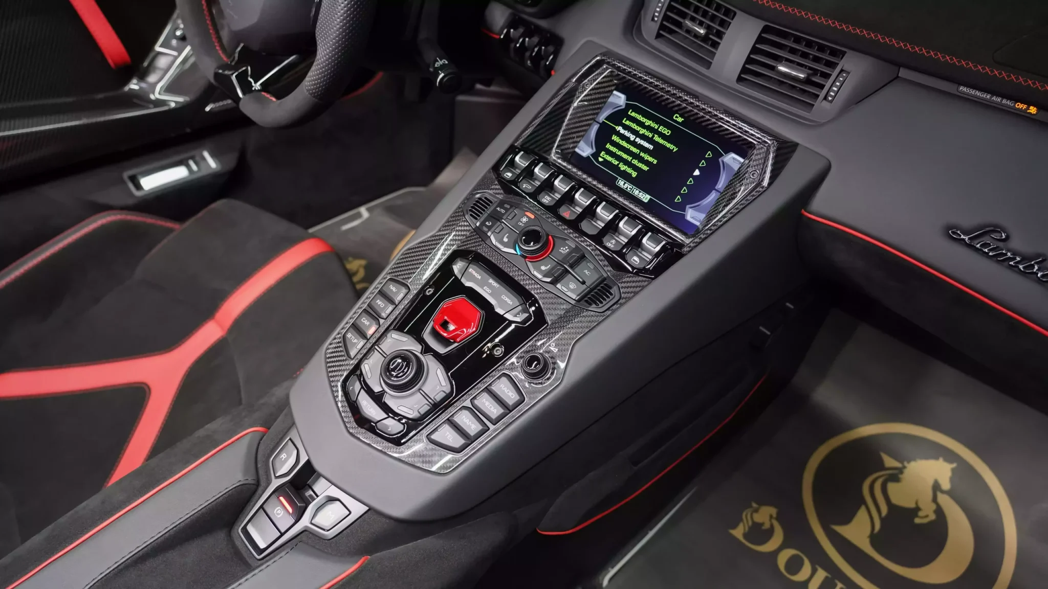 Inside the cabin, the Lamborghini SVJ offers a blend of high-end materials, including premium leather, Alcantara, and carbon fiber accents.