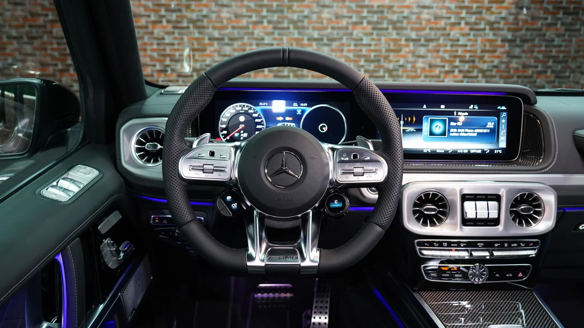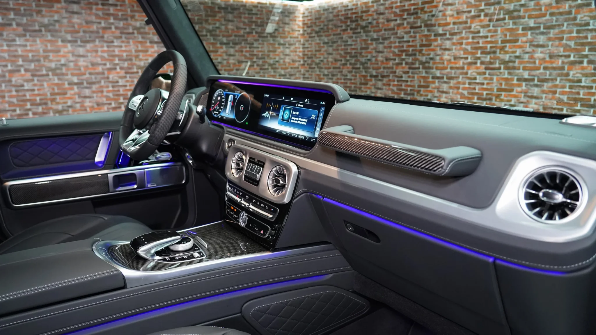 • The interior of the Mercedes G-Class AMG is known for its high-quality materials, advanced technology features, and luxurious finishes. It offers a comfortable and upscale cabin with premium leather, wood trims, and modern infotainment systems.