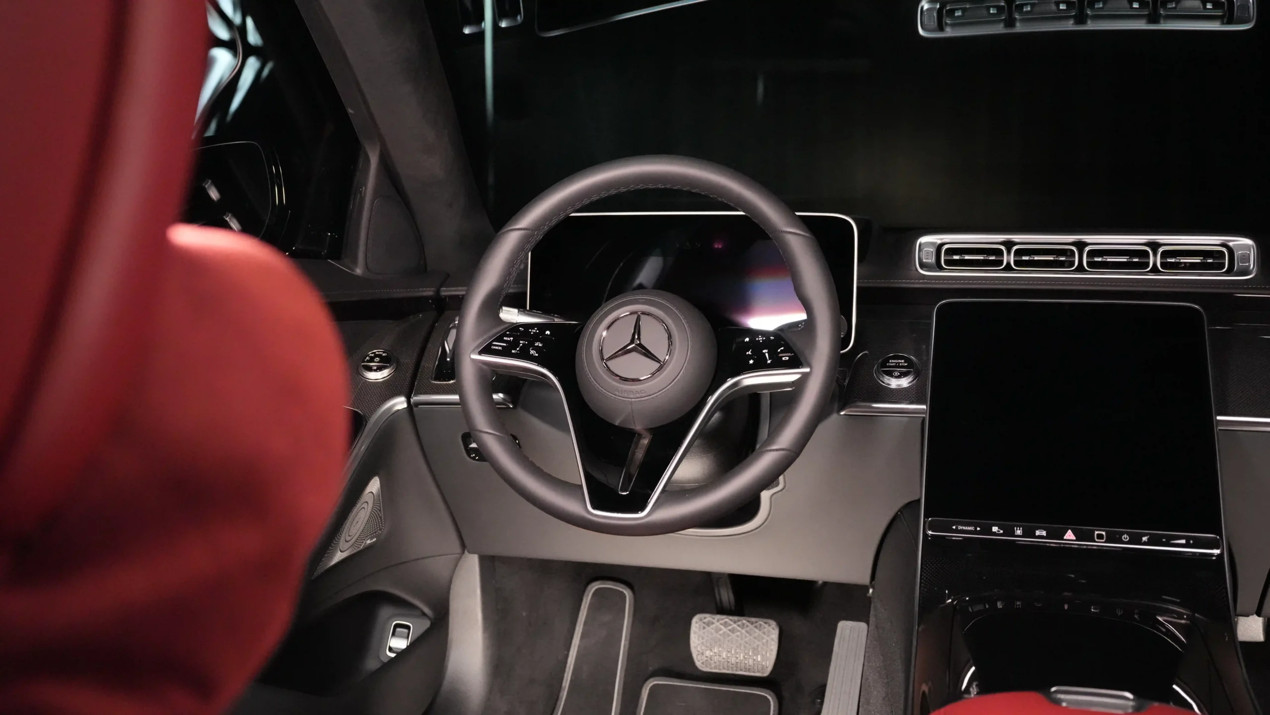 Stepping inside the Maybach S 580 is like entering a world of refinement. The cabin is a showcase of luxury materials and high-gloss finishes, advanced ambient lighting, every journey feels like a first-class experience. Noise-dampening materials ensure a serene cabin environment, while the panoramic sunroof adds a touch of openness.