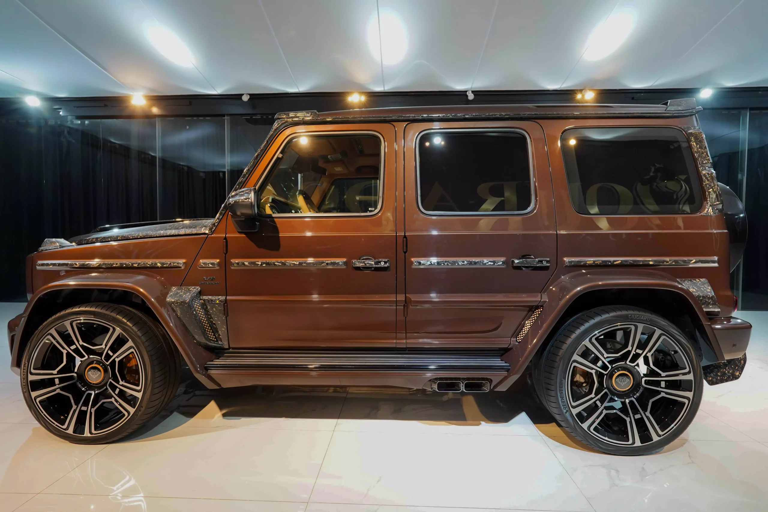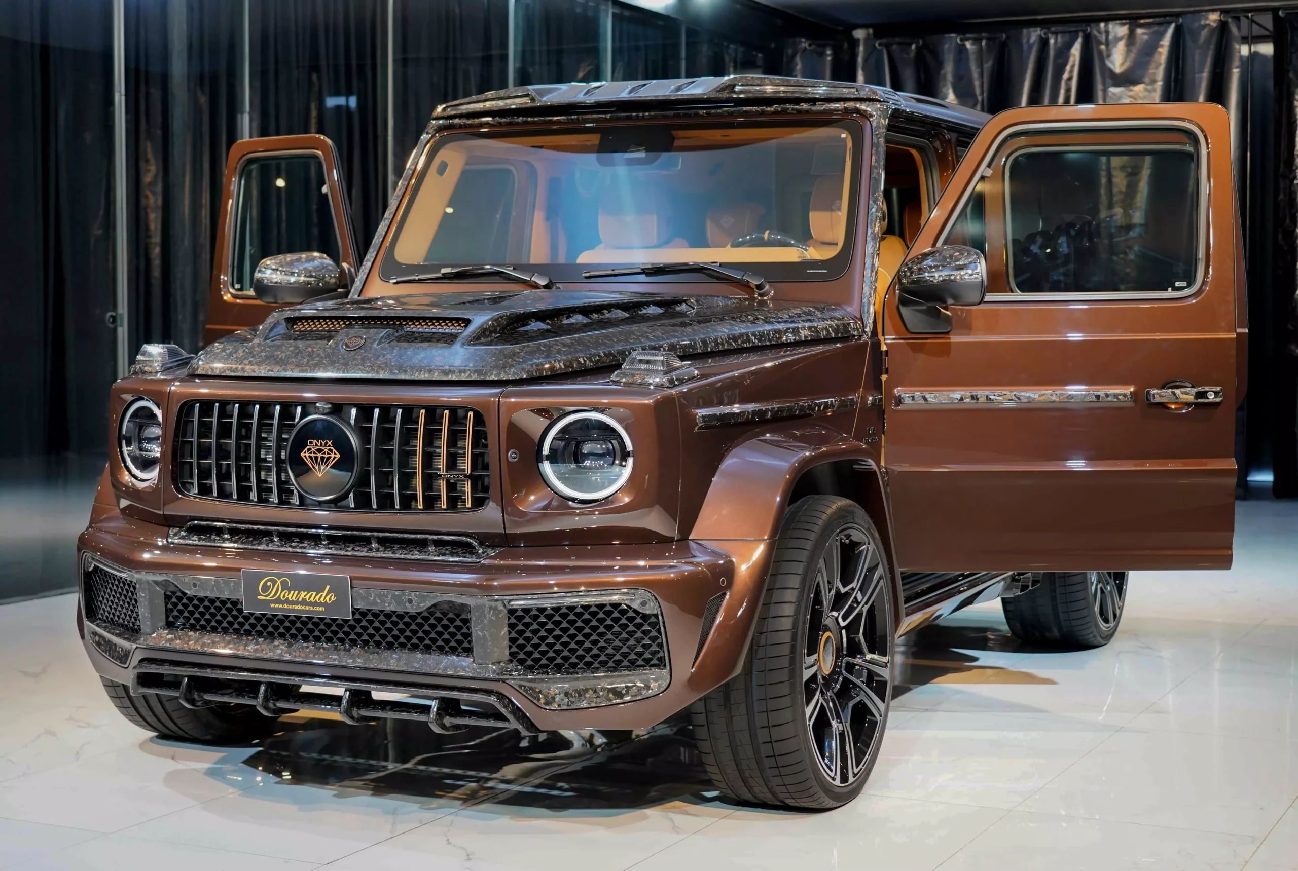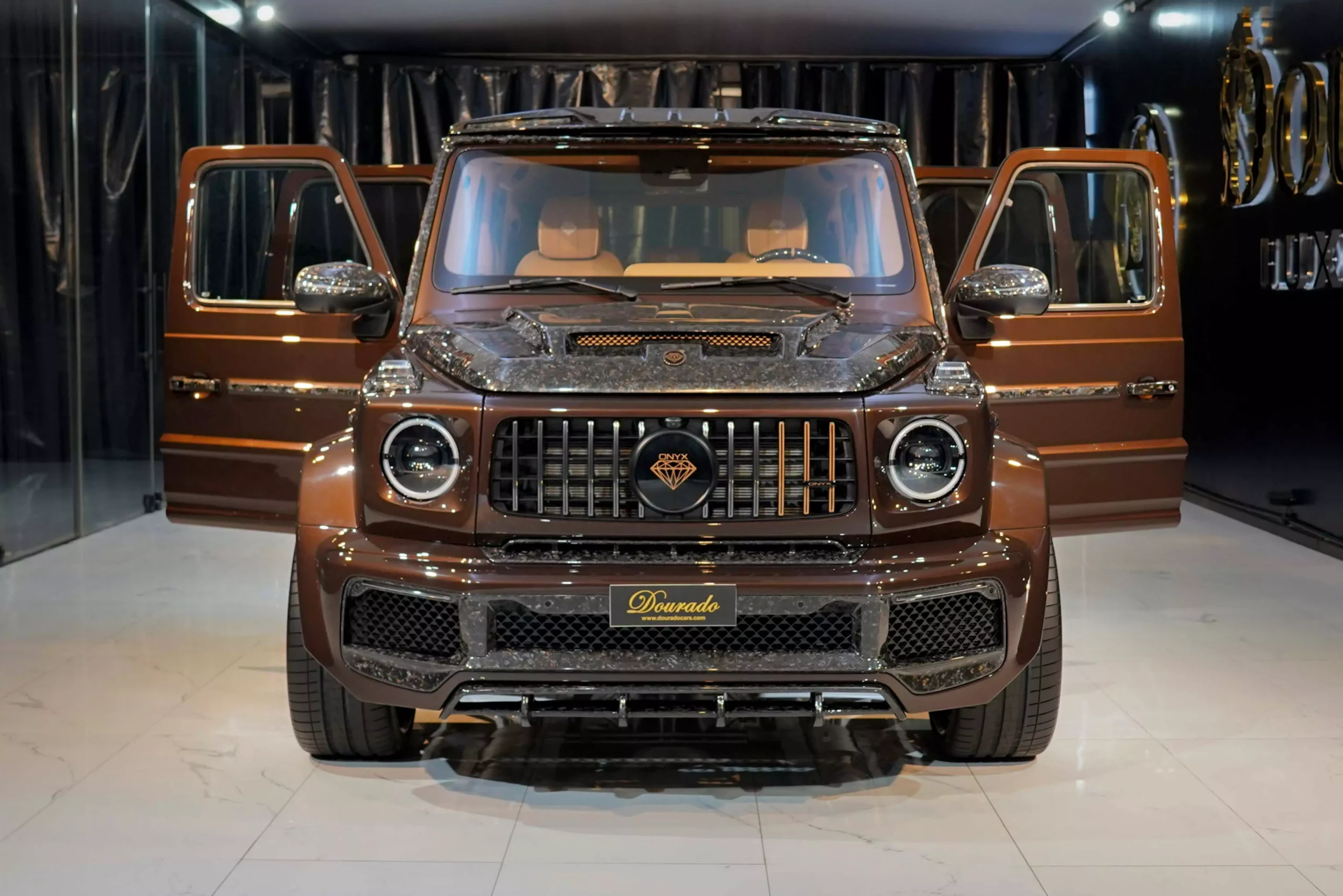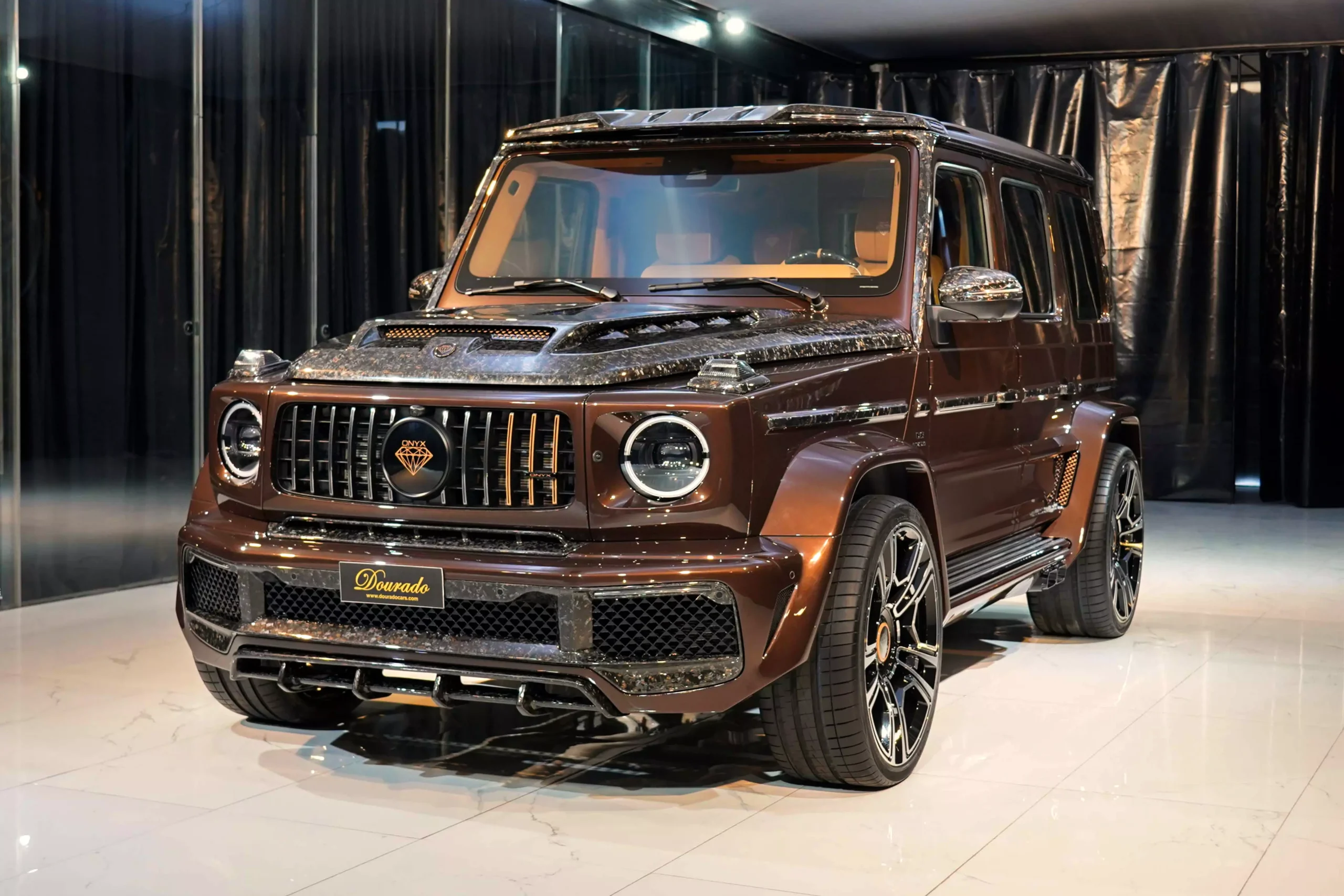 The Mercedes-Benz G7X Onyx Concept 1 of 5 Mystic Brown Metallic is known for its iconic and rugged design, and it has been the basis for various special editions and customizations over the years. These special editions often feature unique styling, additional performance enhancements, and luxurious interior upgrades. Additionally, you can inquire about availability and pricing through their online contact forms or by contacting the DOURADO LUXURY CAR store directly.
