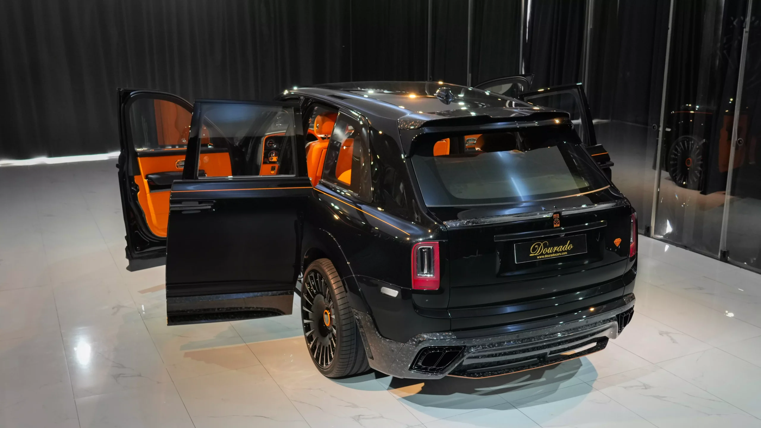 Overall, the Rolls-Royce Cullinan Onyx Concept in Diamond Black with an interior featuring Orange accents embodies the epitome of luxury, craftsmanship, and individuality, offering discerning customers the opportunity to own a truly exceptional and distinctive vehicle. Explore Dourado Luxury Car for latest luxury car models and Rolls Royce prices in Dubai UAE.