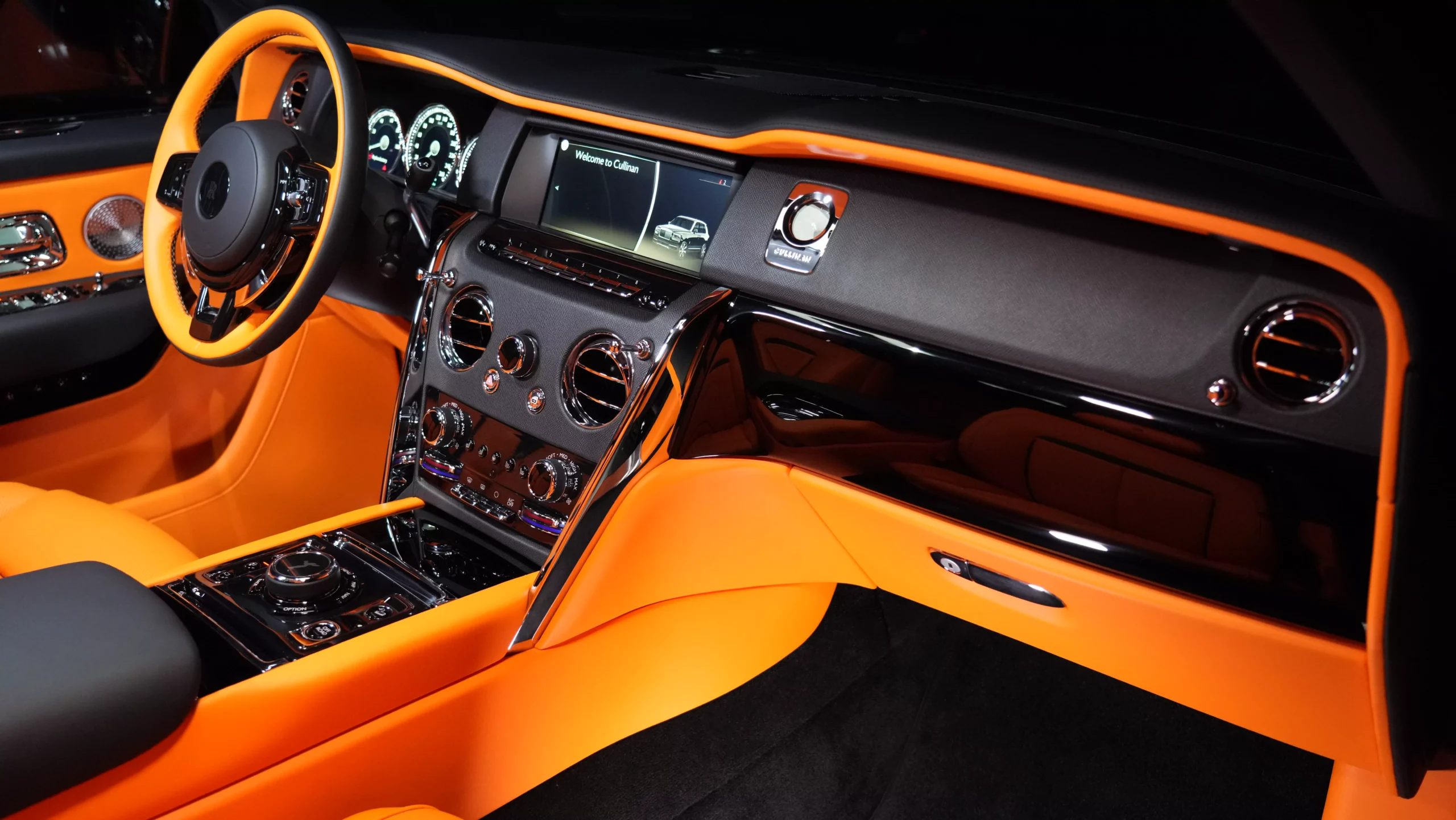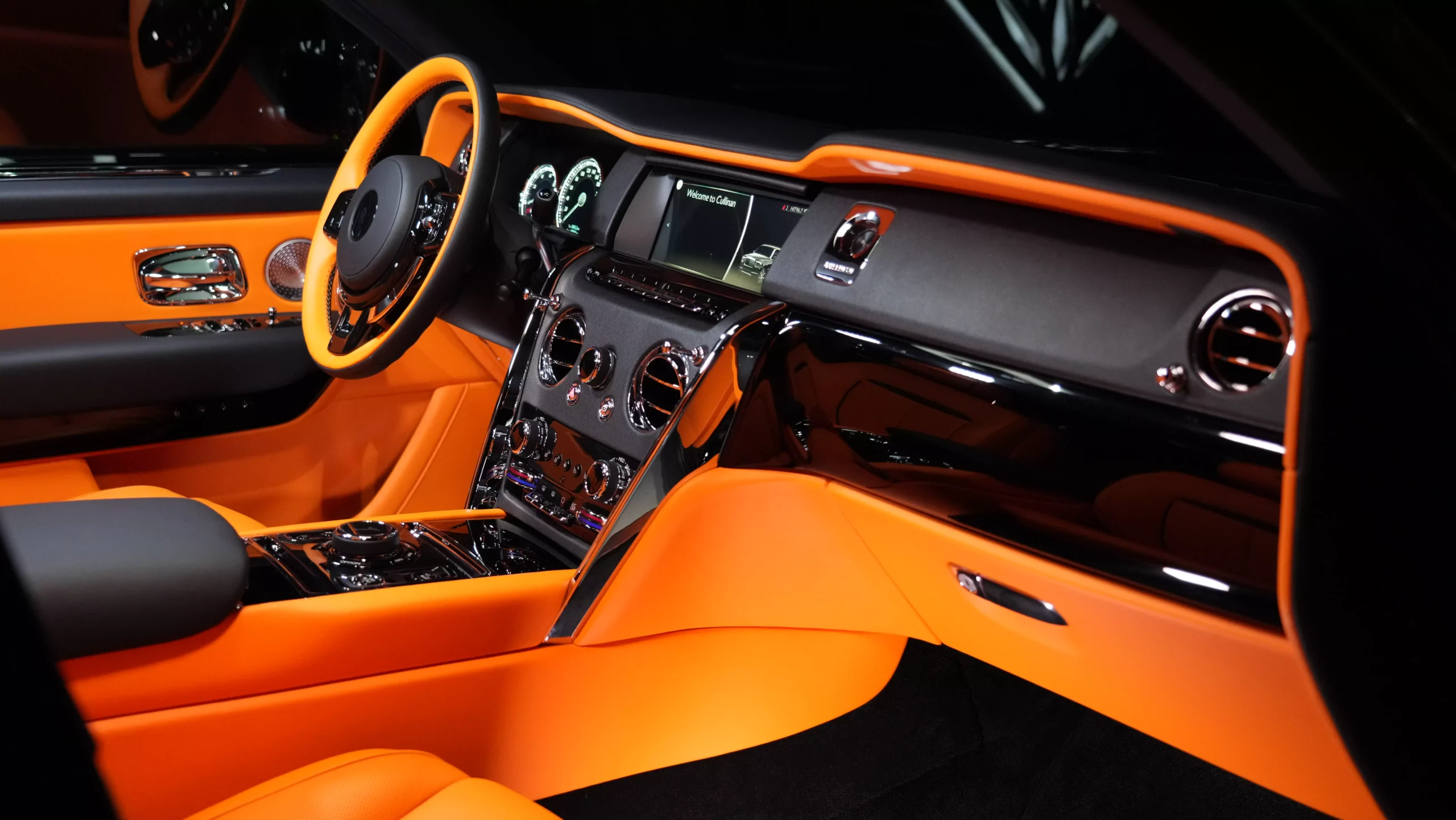 Rolls Royce Cullinan Onyx Concept in Diamond Black & Interior Orange for Sale in Dubai UAE